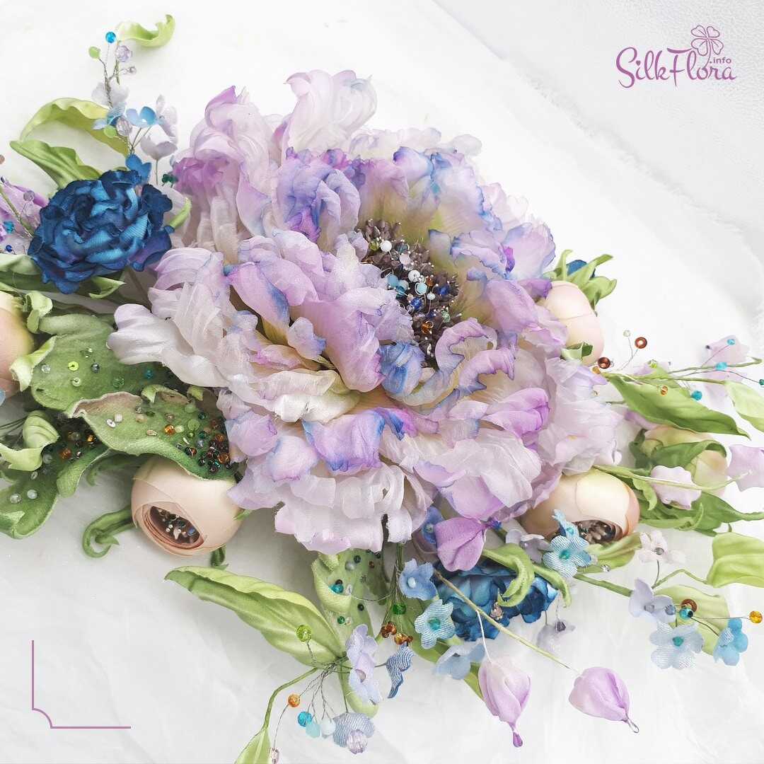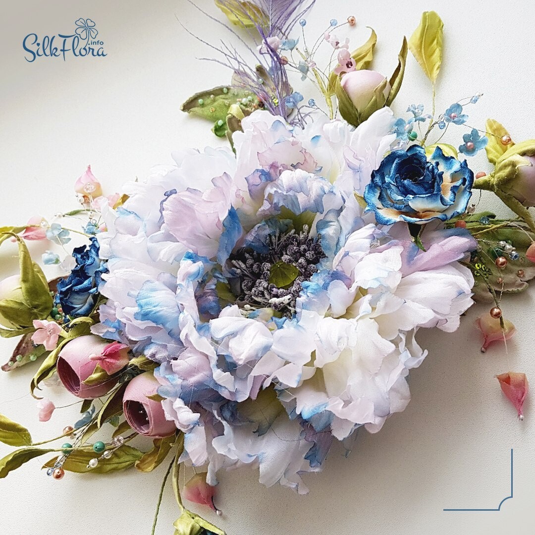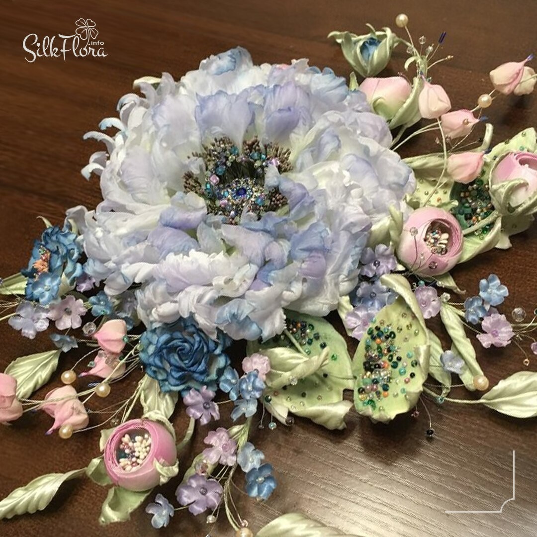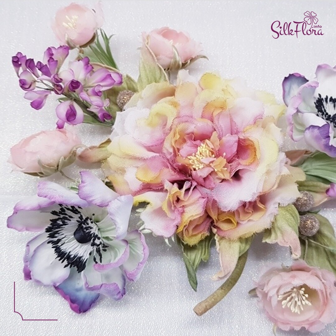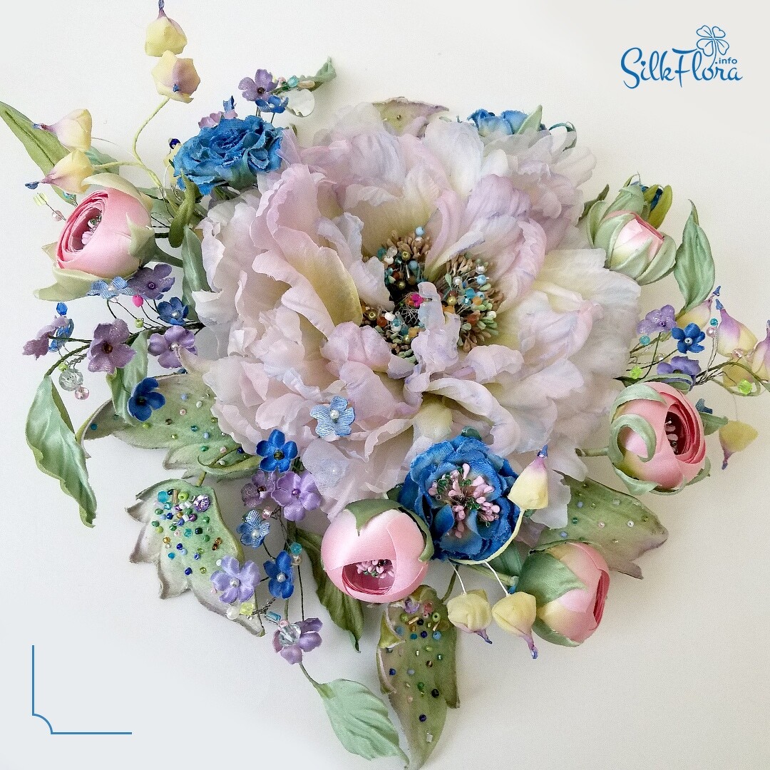 «Здравствуйте, дорогая Полина и вся SilkFlora)) Спасибо вам за этот замечательный проект! За этот бесценный опыт, знания и многие часы радости)) Я собирала цветы в букетики таким образом, чтобы из них получились небольшие милые броши. Но в один прекрасный момент поняла, что просто не могу отказать себе в удовольствии собрать большую композицию)) Вот как-то так она могла бы смотреться))»