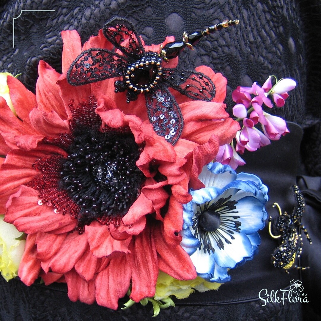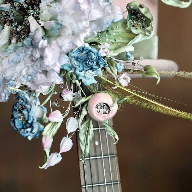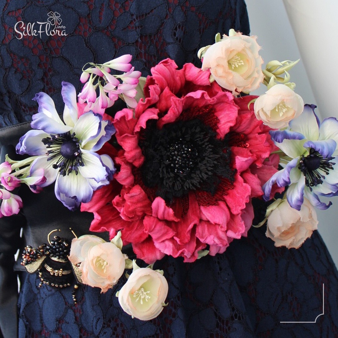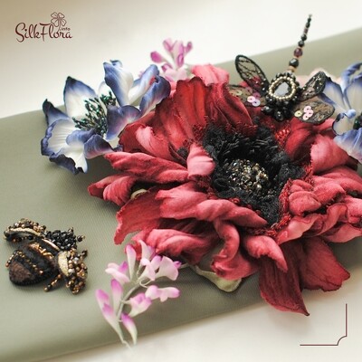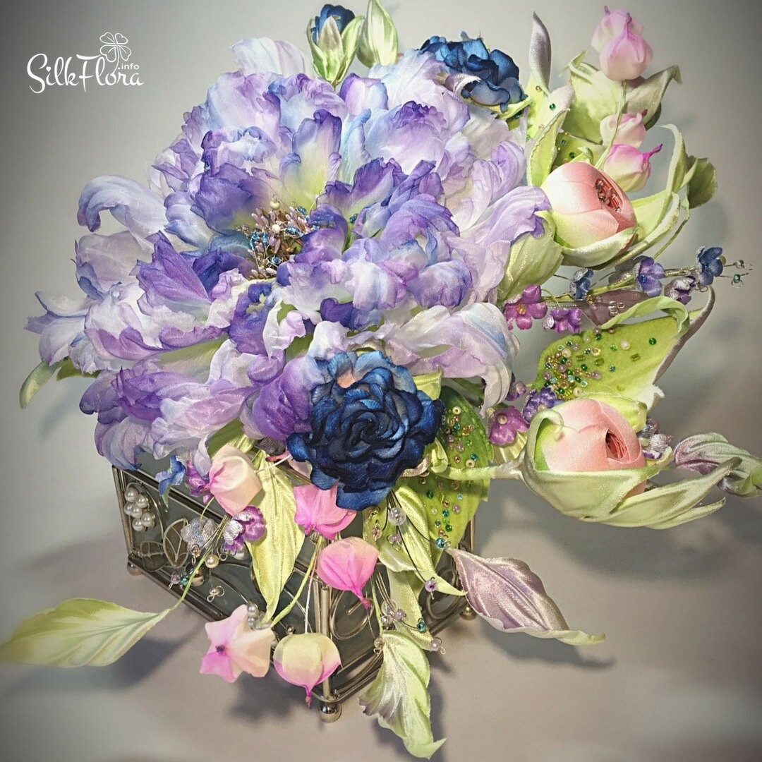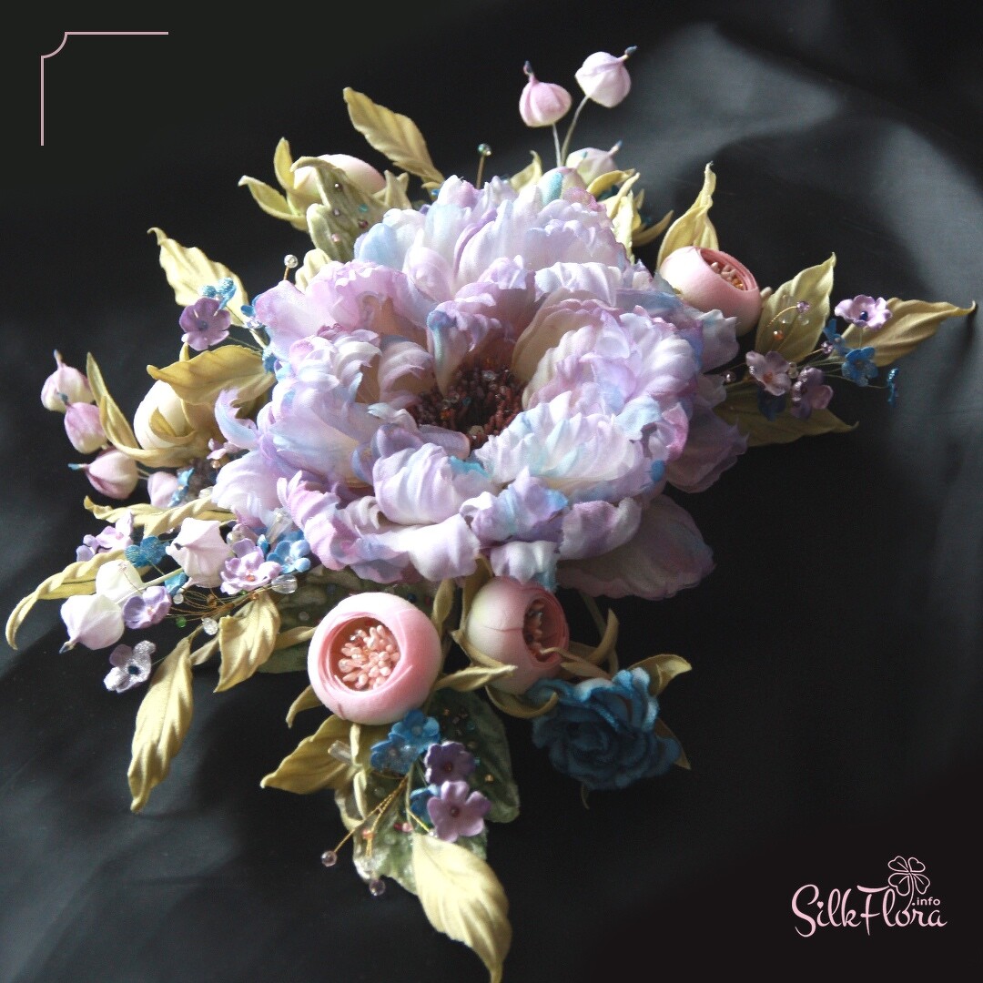 «Здравствуйте, дорогая Полина и вся SilkFlora)) Спасибо вам за этот замечательный проект! За этот бесценный опыт, знания и многие часы радости)) Я собирала цветы в букетики таким образом, чтобы из них получились небольшие милые броши. Но в один прекрасный момент поняла, что просто не могу отказать себе в удовольствии собрать большую композицию)) Вот как-то так она могла бы смотреться))»
