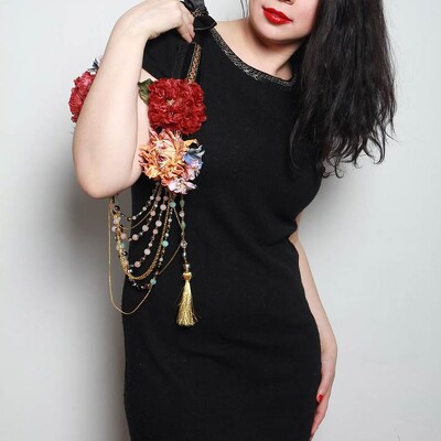 Лёгкие, почти невесомые, переливающиеся, живые — перья обладают магией, которой нет у шёлка или кожи. Они дышат, движутся от малейшего дуновения, меняют цвет под разным углом. А в руках мастера они превращаются в нечто удивительное — например, в пион, пышный, объёмный, почти настоящий, но с тем самым «кутюрным» блеском, который отличает авторскую работу.